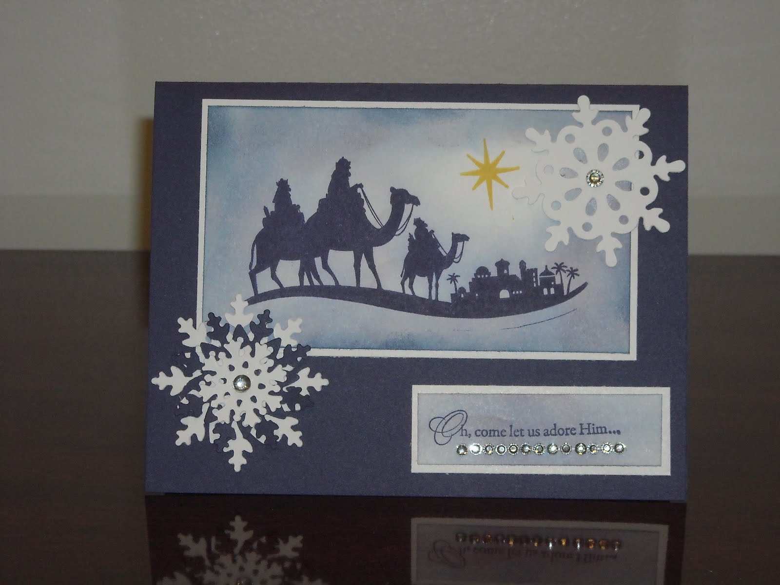The Come To Bethlehem stamp set is a favorite of many because is focuses our attention on the true reason for the Christmas season. I chose this stamp set for this reason and because it teaches us to blend colors to create a beautiful background — truly a work of art.