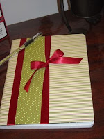 The final project I will show you from Santa's Workshop are these coordinating journals and pens. The ladies from one of my technique clubs made these as a gift of those participating in this event. They were made from composition books that you can purchase from Wal-Mart. The pens are fine point. I used Jolly Holiday designer series paper to cover them composition books.